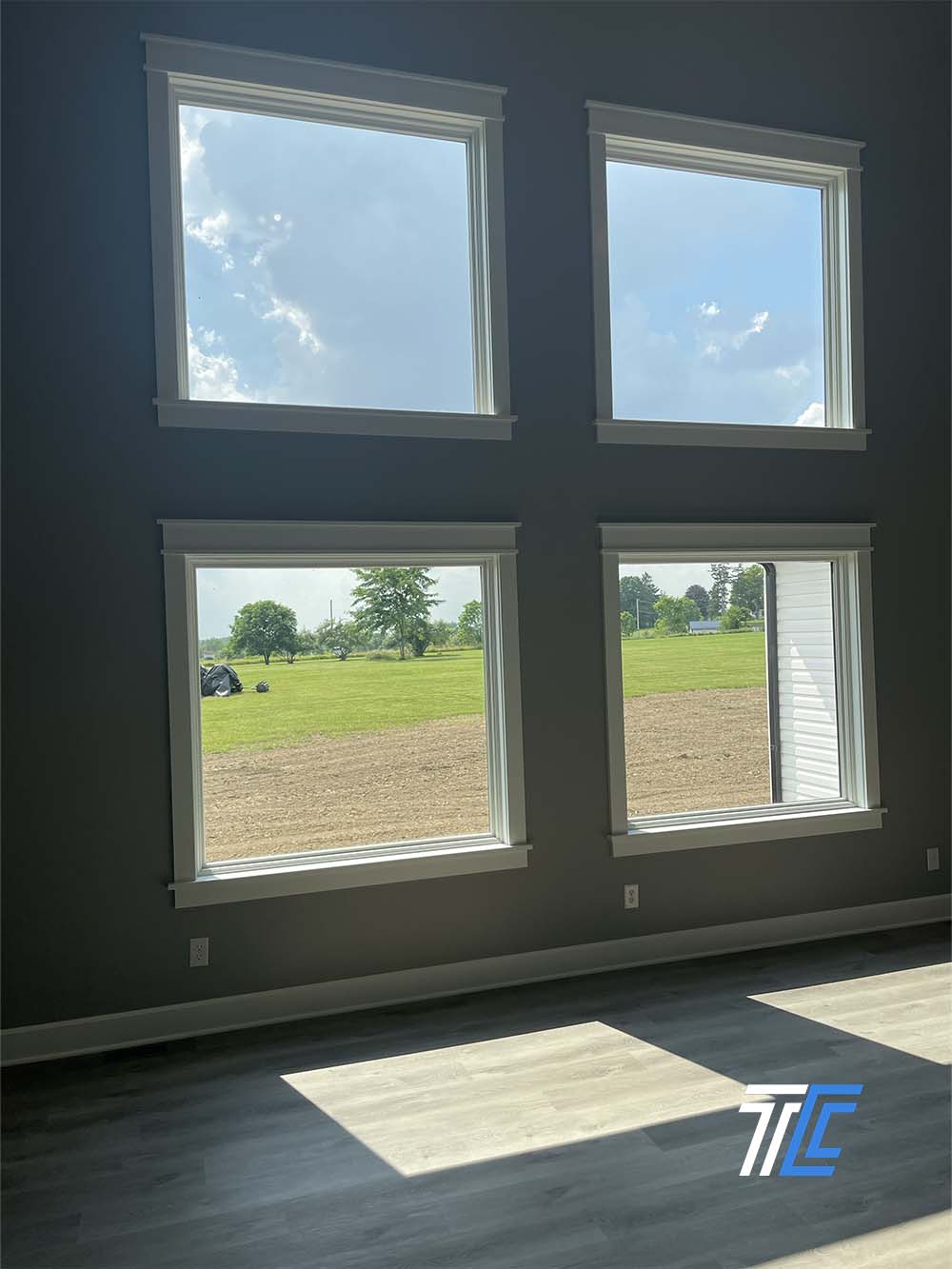 Custom Trim TC Woodworking designed and shiplap. Poplar painted, crown white.