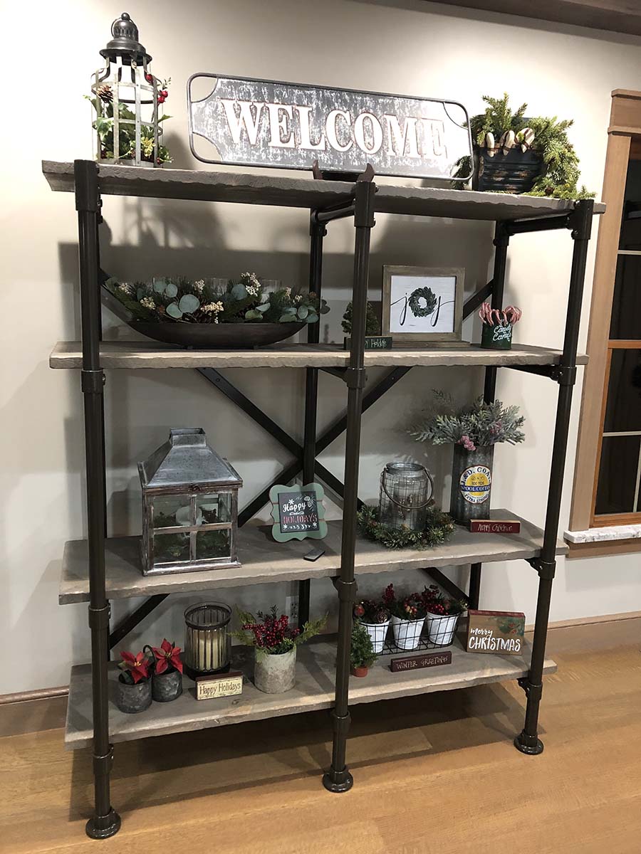 Industrial furniture with Steel Tek products. We offer shelves, sofa tables, pub tables, and bakers racks. Powder coated the steel for a durable finish, rough sawn wood to enhance the farmhouse look.